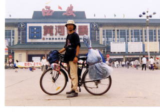 自転車旅行中の若かりし日の私(西安にて)